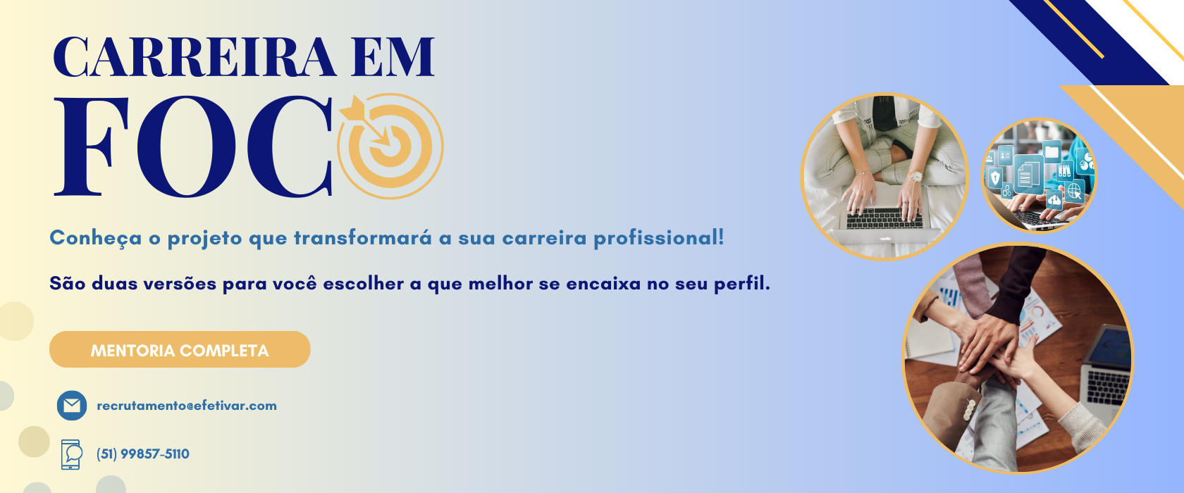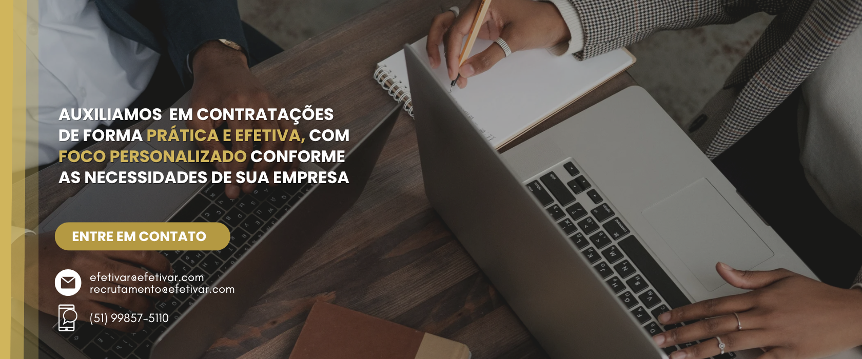 A Efetivar Assessoria em Gestão de Pessoas é uma empresa especializada na prestação de serviços na área de Gestão de Pessoas e Recursos Humanos oferecendo soluções para micro, médias e grandes empresas. Contamos com um serviço personalizado e voltado ao seu negócio, sempre com a atuação de profissionais formados e especializados para atingir os melhores resultados. Estamos localizados na cidade de Sapiranga e oferecemos soluções personalizadas, de acordo com suas necessidades e expectativas, gerando melhores resultados para o seu negócio.